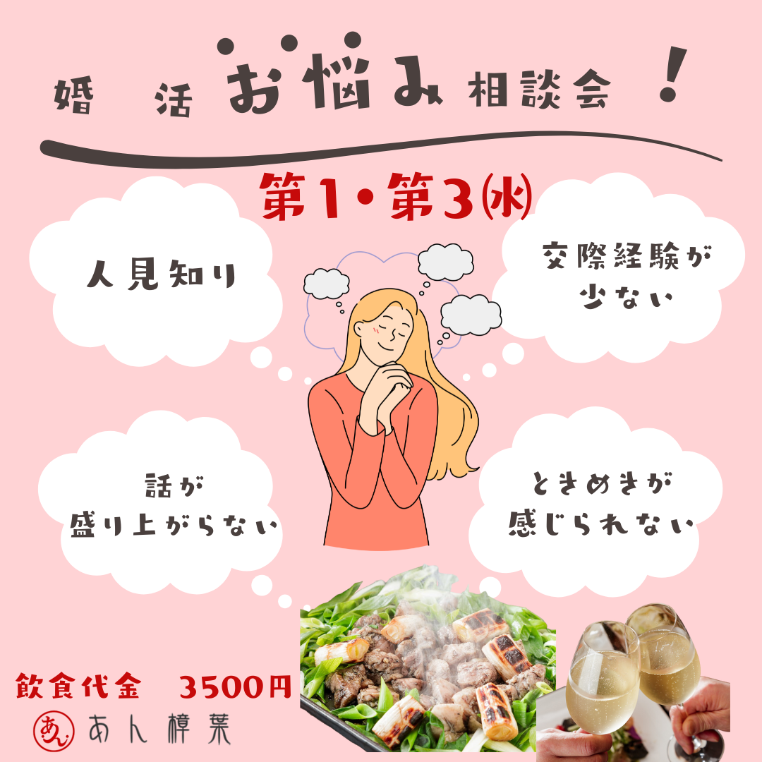 気軽な婚活相談会です。 入会したけど自信がなくて前に進まない・・・ 交際に辿り着かない・・・ ときめく出会いを感じない・・・ 1人で悩まず縁長に相談して一緒に前に進みましょう~ 美味しい霧島鶏もも炙り焼き食べて縁長にお悩み話したら心とお腹が満たされて婚活が楽しくなるよ~!!
