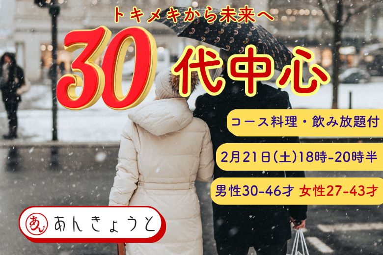 26/02/21(土) 18:00~ 【あんきょうと】 トキメキから未来へコンパ 男性30~46才 女性27~43才